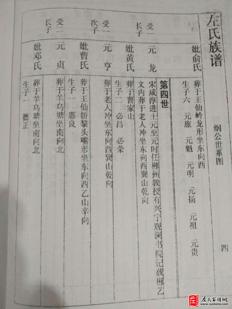 今郴州郴县燕泉左氏裔孙左纲要 字诗虎 宗亲查郴州志载 : 景定三年(1262) 壬戍科 左元龙 中浙江余姚方山金榜 进士 ; 郴州兴宁县(今资兴市) 元至元间(1264∽1294) 左元龙 教授 本郡人 进士 ; 郴志 卷之三载: 元朝至元间(1264∽1294) 左元龙 任教授 又资兴市《观澜书院考略》载:元大德六年(1302年) 左元龙 撰写《重修观澜书院纪实》,该书院位于郴州兴宁县今资兴市七里镇柏树村铺上组曹氏家族书院。
