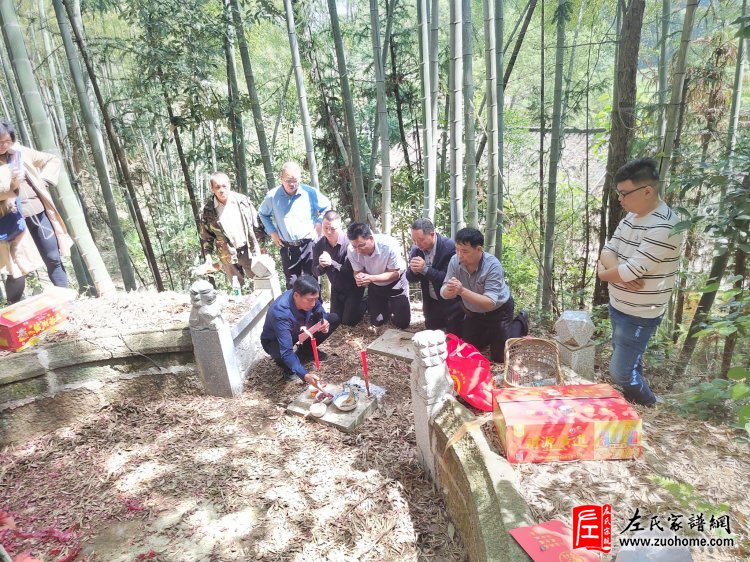 5月1号10:08车队前往先祖墓地祭拜。主祭人左宗良,左自力恭颂祭文,左宗仲准备祭品,左本伏等宗亲协助。