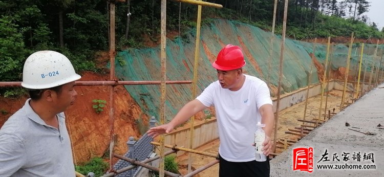 2021年4月破土兴工,场面热烈,人声鼎沸,车水马龙,工地上人声、机器声合凑一起,按计划2021年7月18要进行封顶大吉,到了5月28日工程达不到一半,不能如期封顶,左立强心急如焚,亲临祠堂工地督工。从杨嘉桥的金笔村到分水乡的长丰村,车程60公里,每天7:00上班,下午18:00下班,督工时,哪里要开沟,哪里要用水泥硬化,哪些工程要怎么做,他都清楚得很,一连督工30多天,使工程如质如期完成。于7月18日大吉大利封顶,族人们看在眼里,喜在心里,开玩笑地说:“立强叔,你每天这样跑来跑去,你的宝马车是烧水的吧!”他憨厚一笑说:“冒得事,我还要想办法再多捐点钱”。