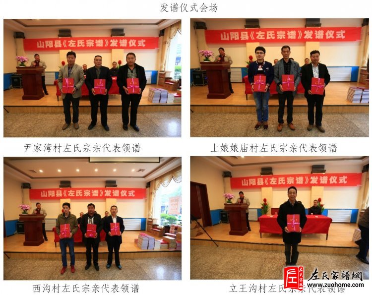 | “参天之木,必有其根,环山之水,必有其源”。寻根问祖、追本溯源是中华民族的传统美德。陕西省商洛市山阳县牛耳川镇左氏家族德仪公后裔子嗣,为了敬宗收族,敦伦睦亲,修编宗谱,告慰先祖,启迪后人,于2013年(农历癸巳年)清明节向尹家湾村、上娘娘庙村、西沟村、柞水县红岩寺镇立王沟村等四个村的左氏宗亲发出了续修族谱的倡议。经过2年多的不懈努力,完成了陕西省山阳县《左氏宗谱》(德仪公支系)的编修工作,结束了我族无谱的历史,实现了我族认祖归宗的第一个夙愿,并于2015年(农历乙未年2月17日)4月5日清明节在山阳县城关镇开源大酒店举行了隆重的发谱仪式。